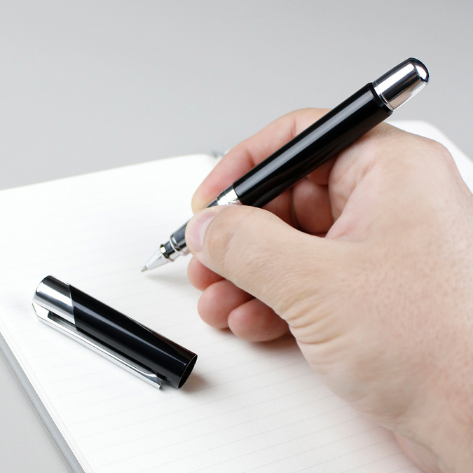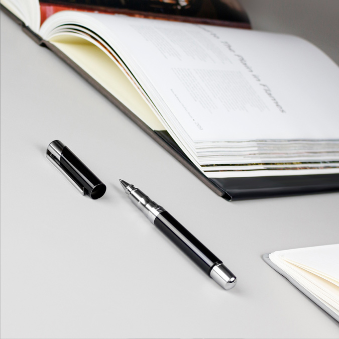 destacando intencionalmente el elegante remate cromado en perfecta armonía con el resto de la pieza. Acabados de alto brillo. Gran experiencia de escritura, gracias a su repuesto japonés tipo roller de alta calidad, disponible en tinta negra o azul.